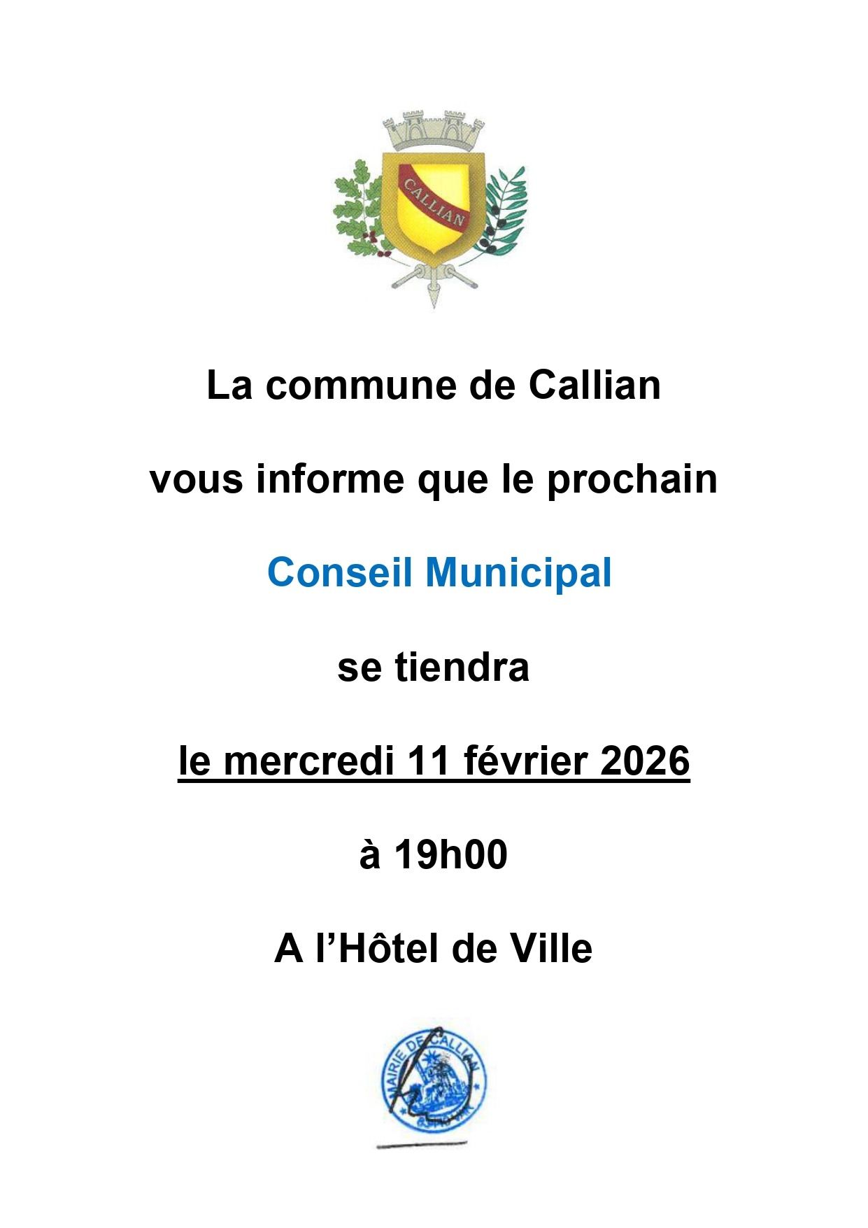Fait à CALLIAN, le 08 août 2025Le Maire, François CAVALLIER